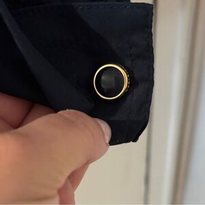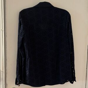 Tory Burch navy blue Liam eyelet sleeve button down top size 10