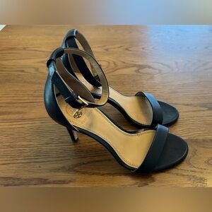 Tory Buy Black High Heeled leather Sandal with Open Toe and Stiletto Heel size 5