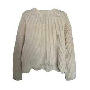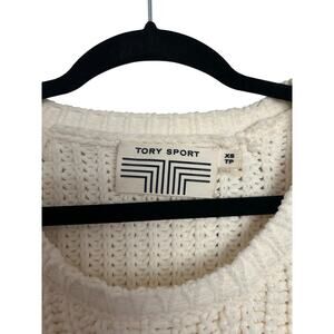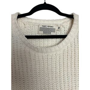 Tory Sport Chunky Knit Scalloped Hem Fisherman Boxy Fit Sweater Cream Sz XS