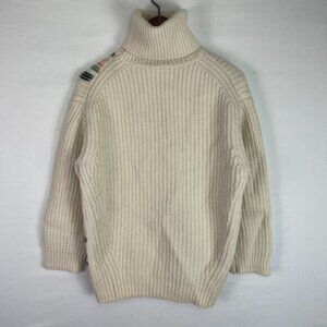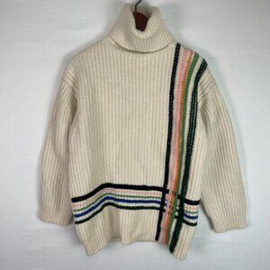 Tory Sport Merino Wool Striped Long Sleeve Turtleneck Chunky Knit Sweater Cream