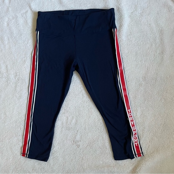 Tory Sport Navy Capri Leggings Stripes Side Size XL