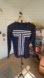 Navy blue long sleeve top with striking white stripes. Great for activewear or casual wear!