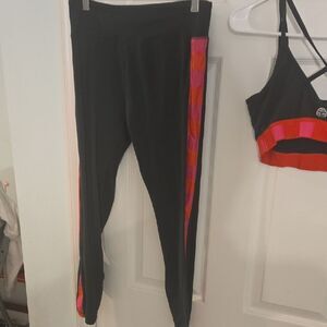 These Tory Sport leggings feature a sleek black design with vibrant pink accents, offering a stylish and comfortable fit for any workout. Crafted from a stretchy athletic material, they provide excellent support and flexibility. Ideal for both exercise and casual athleisure wear, these leggings are a must-have for your active wardrobe.