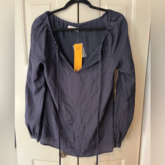 Tory Burch blouse, new with tags. Navy blue with gold buttons