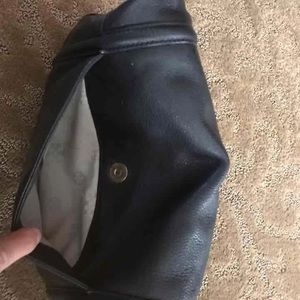 The strap part is broke but can easily be fixed if taken to store. Little dirty inside but can be washed . Love this purse big and space fold over . Look at pics good . Any questions please message before u purchase. Can wear without the strap also. Brand new condition on the outside no rips stains or scratches