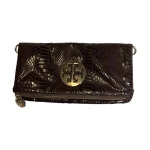 Tory burch elegant brown snake skin fold-over crossbody/clutch/shhoulder bag