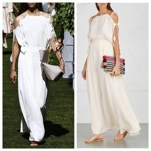 TORY BURCH EVALENE COLD SHOULDER CREPE MAXI DRESS. Runway l New with tags. Shade is an ivory, not bright white