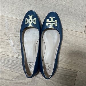 Tory burch flat navy blue shoes size 6.5. Bought at Tory burch store, wore only a few times in three months. Come with the box. Sell it just because I cannot fit them anymore after pregnancy.