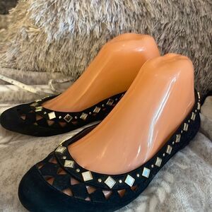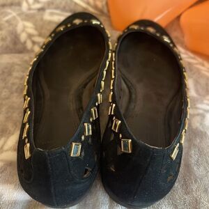 Tory burch kingsbridge ballet-lancaster suede sz 8m black suede gold silver boho