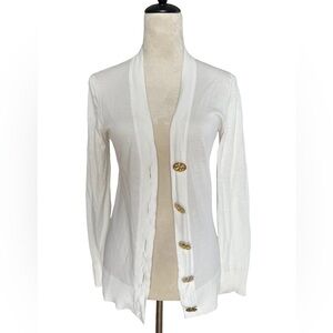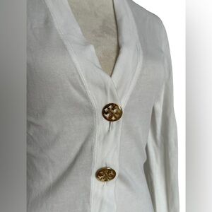 Tory burch white long sleeve v-neck gold bottoms simon cardigan