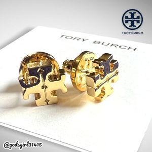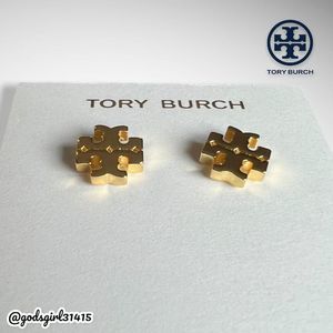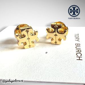Tory Burch 18K Gold Plated Kira Logo Stud Earrings & Jewelry Dust Bag. Retail: $78