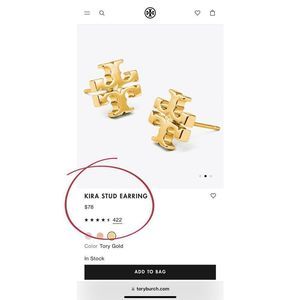 Tory Burch 18K Gold Plated Kira Logo Stud Earrings & Dust Bag $78