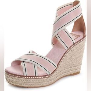 Step out in style with these chic pink strappy wedge sandals. Perfect for any occasion, these sandals offer both comfort and elegance.
