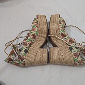 Tory Burch Antiquity Positano Lace-up Espadrilles Sandals Platform women's 7