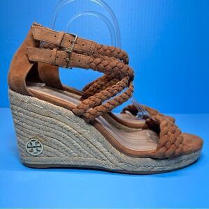 Tory Burch Bailey Braided Ankle Strap SOHO Lux Suede Espadrille Wedge Sandals 9