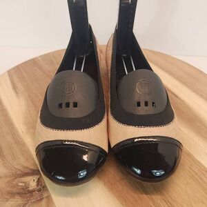 Tory Burch Bridgette Honeywheat Black Leather Quilted Cap Toe Ballet Flats 6 M