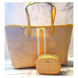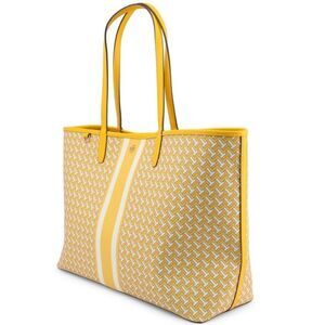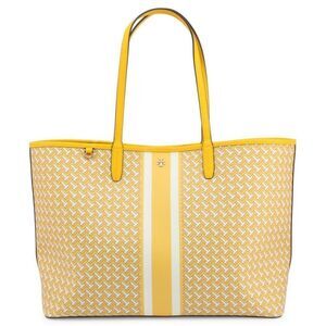 Tory Burch Bright Yellow Varsity Stripe T- Monogram Tote Bag