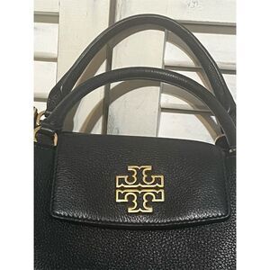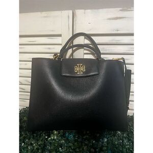 Tory Burch Britten Black Leather Tote Bag with Gold Hardware