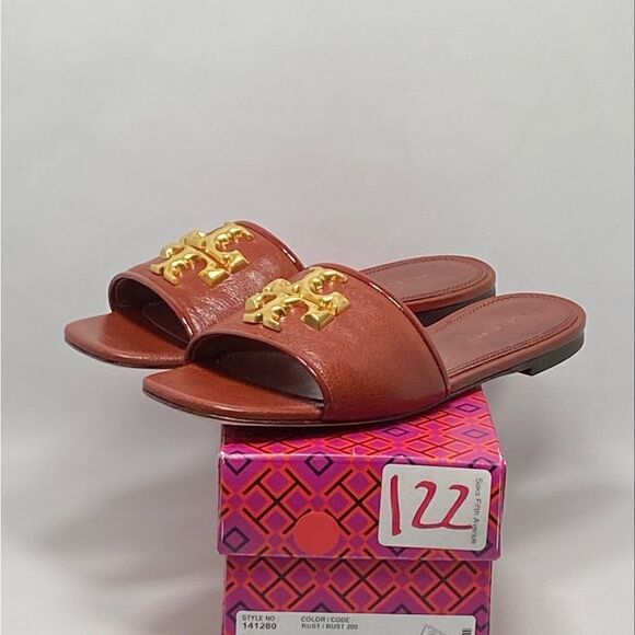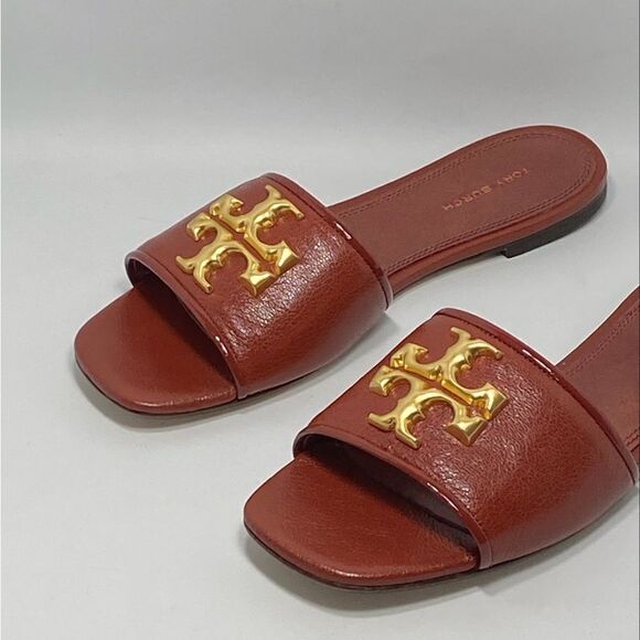 Tory Burch Elanor Leather Logo Slides size 6.5