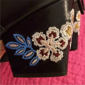 Step out in style with these chic black ankle boots. Featuring elegant floral embroidery, they add a touch of sophistication to any outfit. Excellent condition, no box