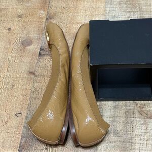 Tory Burch Flats Womens 8M Nude Beige Caroline Ballet Patent Leather Slip On