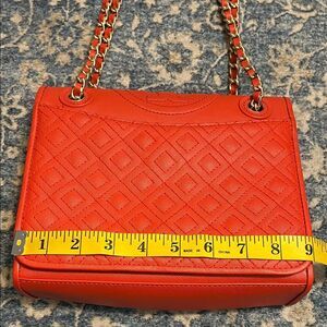 Tory Burch Fleming Quilted Leather Chain Red Orange Shoulder Purse Bag. No dust bag.