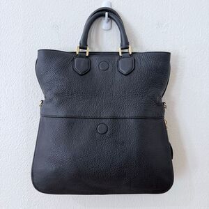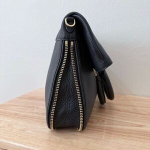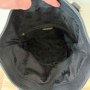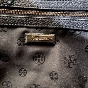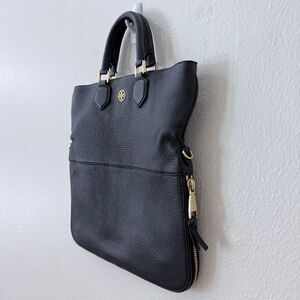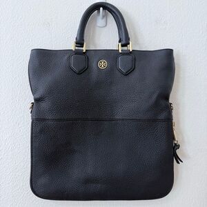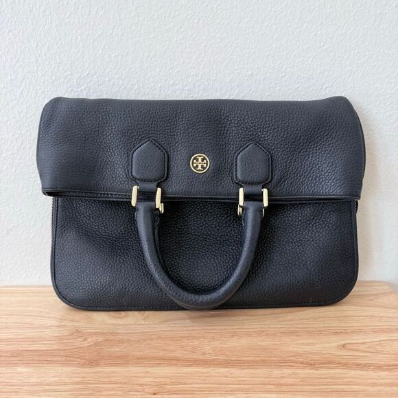 Tory Burch Fleming Two Way Pebbled Black Leather Shoulder Bag Purse Gold Hardwar