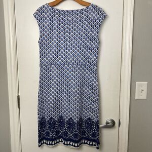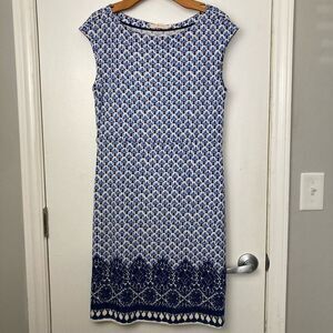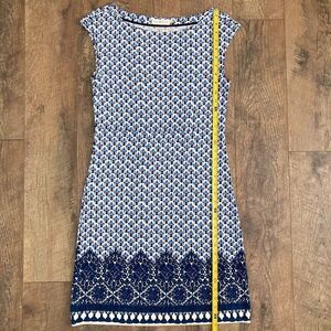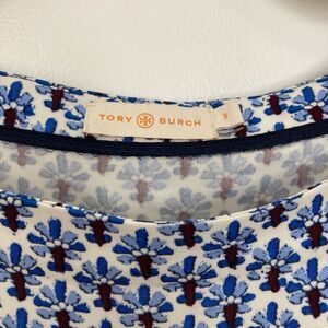 Tory Burch Jamie Cap Short Sleeve Sheath Floral Dress Navy White Printed S Small