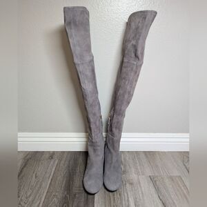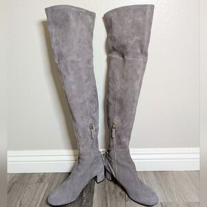 Tory Burch Laila Light Gray Suede Stretch Over-the-Knee Boots Womens 6