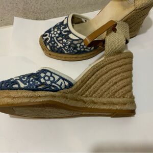 Tory Burch Lucia Lace Wedge Espadrille, Tory Navy white 8.5 M