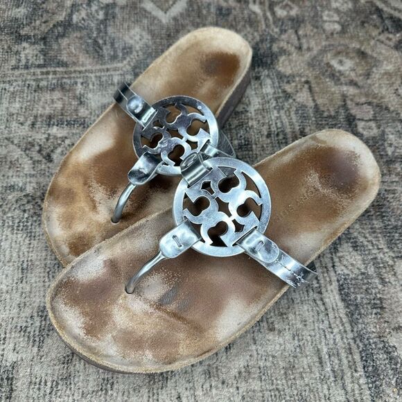Tory Burch Miller Cloud Metallic Silver Sandals 8.5