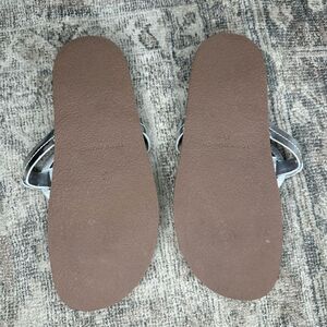 Chic sandals with metallic silver straps. Comfortable brown footbed. Ideal for everyday style. Preowned. Great condition and still lots of life left. Sold as is - no bag or box included.