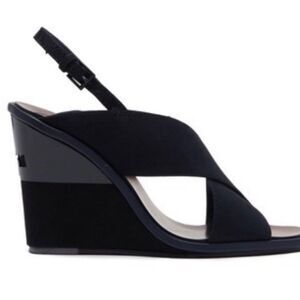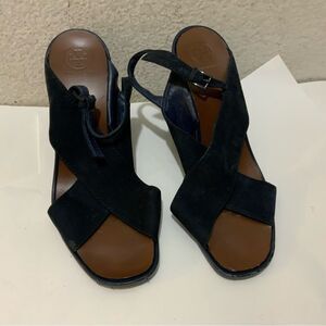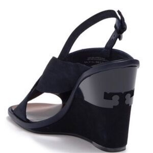 Tory Burch Navy Blue Suede Gabrielle Slingback Wedge Sandals Womens Size 8.5 M