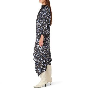 Tory updated her signature tunic dress with puffed sleeves, a handkerchief hem, and best of all, a hand-painted floral print by artist Francesca DiMattio. Inspired by porcelain motifs from different eras and cultures, the blooms are expressionistic, rather than careful and delicate as decorative arts are.