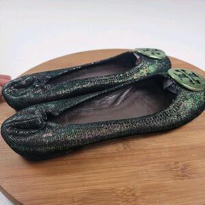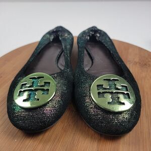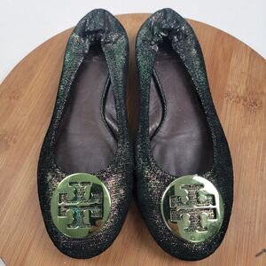 Tory Burch Reva Green Glitter Ballet Slip On Flat Shoes Women's Size 8