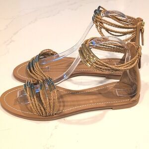 Tory Burch Tan Mignon Rings Strappy Ankle Strap Leather Sandals Size 9