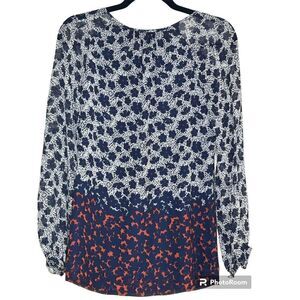 Tory Burch Womens Blouse Blue Floral Long Sleeve Button Cuff Keyhole Neck Top 2.
