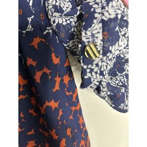 Tory Burch Womens Blouse Blue Floral Long Sleeve Button Cuff Keyhole Neck Top 2