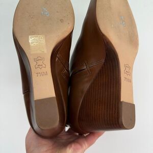 Tory Burch Women’s Sofia Cognac Leather Wedge Zip Almond Toe Ankle Bootie