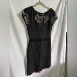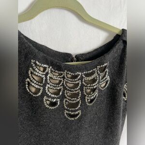 Tory Burch charcoal gray sequined wool dress with nude sheer slip lining size S