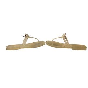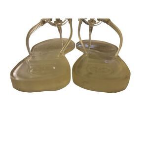 Tory Burch clear sandals. White TB logo with thong style strap. Some wear marks (see in pics) but still an excellent item! #toryBurch