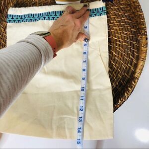 Tory Burch Cream Drawstring Dust Bag Teal Navy Grecian pattern on top