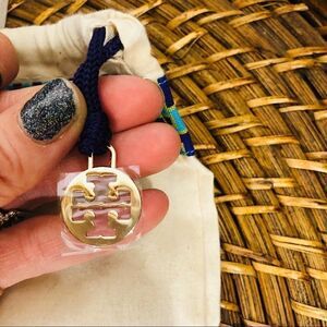 Tory Burch Cream Drawstring Dust Bag Teal Navy