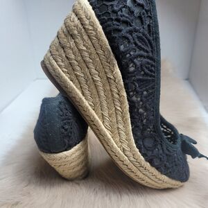 Tory Burch Jackie Wedge Womens Black Lace Espadrille Size 9.5 Great Condition See Pictures For More Details.