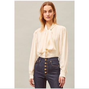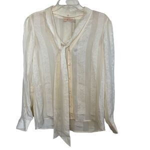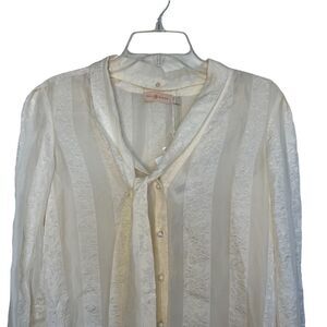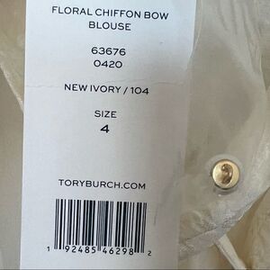 Tory Burch New Ivory Floral Chiffon Bow Blouse Size 4