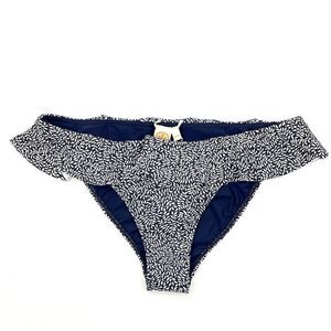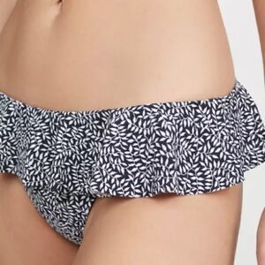Color: Ditsy Leaf Ruffle trim Leaf print Bikini bottoms (Navy and White)