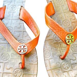 Tory Burch Thora Orange Leather Flip Flop Sandals Womens Size 11