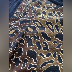 Lightly worn. Recently dry-cleaned. Navy blue with animal print in front. Size XS