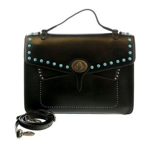 Western inspired structured flap top handle bag- Detachable additional strap- Turquoise colored bead detail
