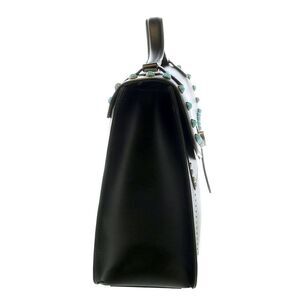 Tosca Blu Black Small Western Inspired Beaded Flap Top Handle Bag